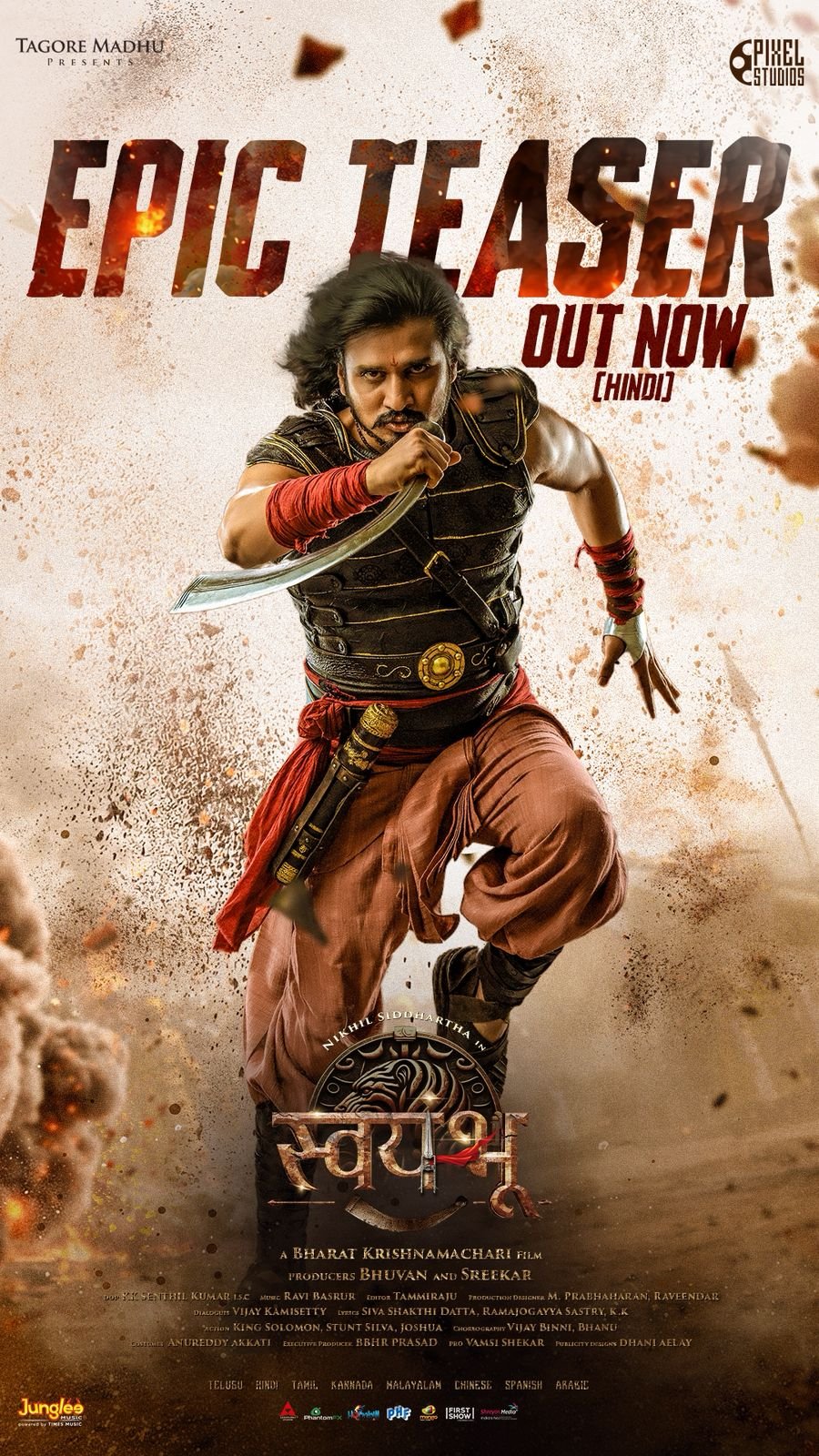 बहुप्रतीक्षित पैन इंडिया फिल्म स्वयंभू का टीज़र रिलीज़ होते ही चर्चा का केंद्र बन गया है। कार्तिकेय फेम निखिल सिद्धार्थ इस फिल्म में मुख्य भूमिका