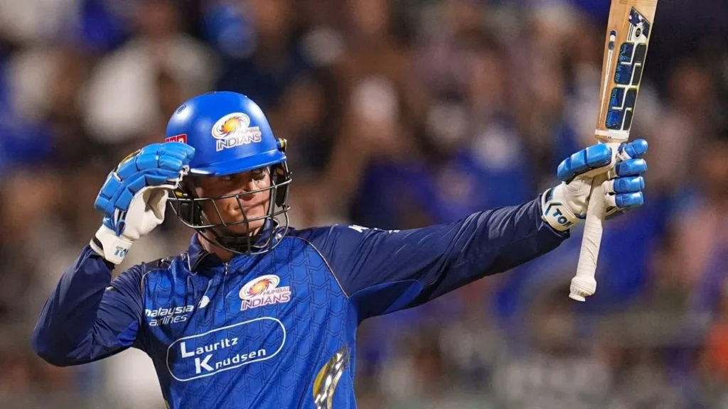 रिकल्टन ने इस मैच में विल जैक्स के साथ मिलकर टीम को शानदार शुरुआत दिलाई. दोनों ने मिलकर सिर्फ कुछ ही ओवरों में 93 रन जोड़ दिए. रिकल्टन ने महज 23 गेंदों में अपना अर्धशतक पूरा कर लिया था, जिससे साफ था कि वह बड़े स्कोर के इरादे से उतरे हैं. जैक्स के आउट होने के बाद भी रिकल्टन का आक्रामक खेल जारी रहा और उन्होंने अपनी पारी को शतक में बदल दिया.
